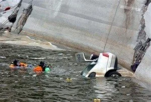 Just after 6:05 p.m. on Wednesday, August 1, 2007, all eight lanes of the Interstate 35W Bridge over the Mississippi River in Minneapolis collapsed, killing thirteen people, and injuring fifty others. A school bus returning from a Day camp field trip to a water park, nearly plunged into the Mississippi, while carrying sixty-three children – but the bus ended up perched precariously against a guardrail of the collapsed bridge, beside a burning semi-trailer. A 20-year-old staff member on the bus kicked out the rear emergency exit and led the children to safety. Another youth worker was severely injured. Some vehicles were thrown into the water, while others burst into flames on the pieces of the broken bridge hovering over the water.